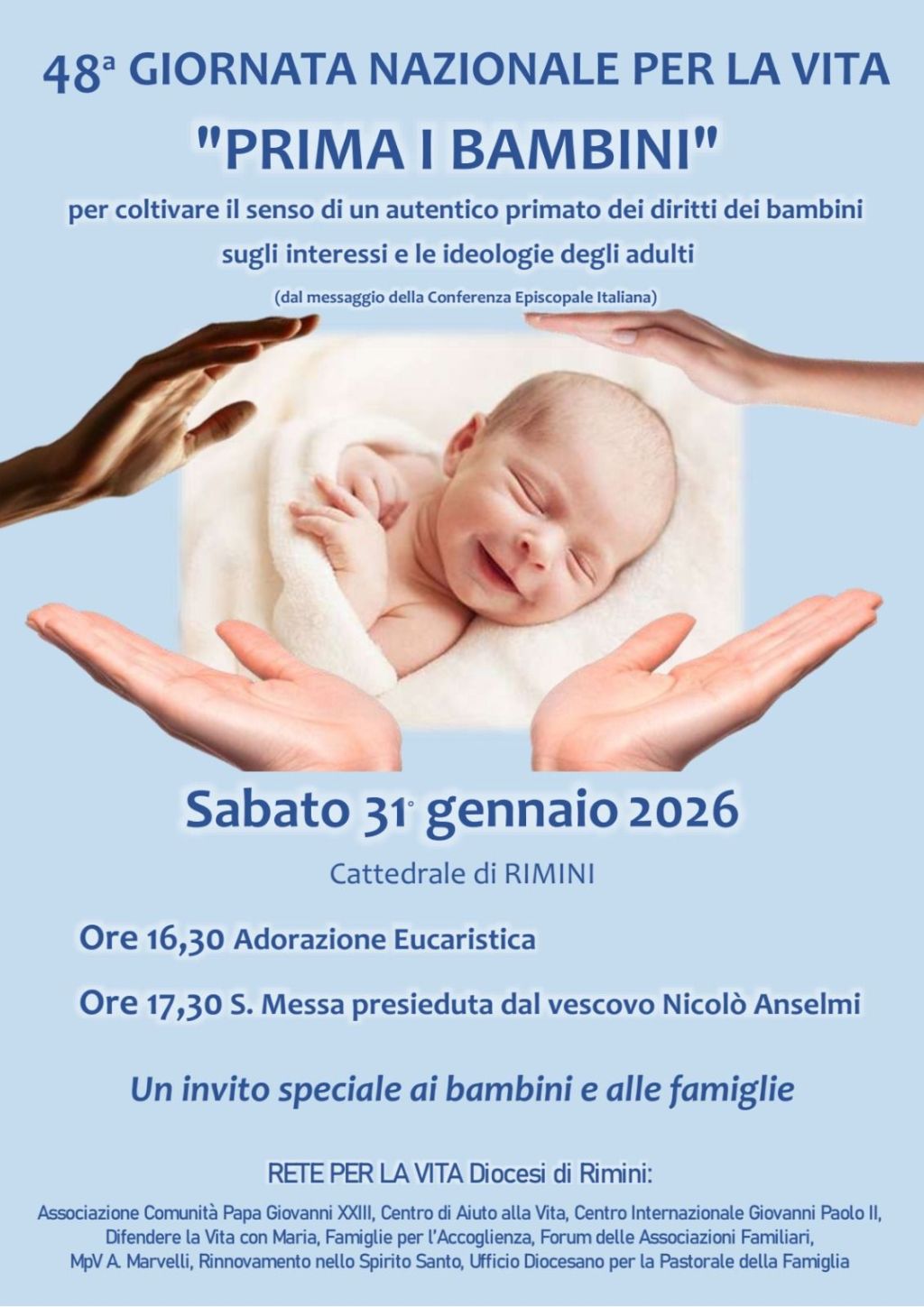 Giornata della vita Data 31 Gen 2026 Ora 16:30 - 18:30 Ora locale Fuso orario: America/New_York Data: 31 Gen 2026 Ora: 10:30 - 12:30 Luogo Cattedrale Rimini Categoria Eventi Condividi questo evento