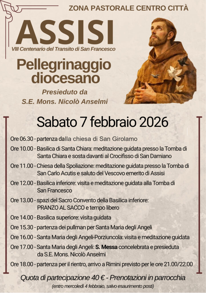 Pellegrinaggio ad Assisi Data 07 Feb 2026 Expired! Ora 6:30 - 22:00 Ora locale Fuso orario: America/New_York Data: 07 Feb 2026 Ora: 0:30 - 16:00 Categoria AgendaEventi Condividi questo evento