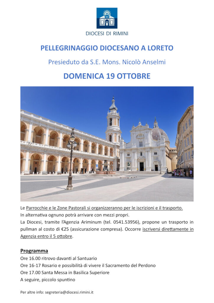 Domenica 19 alla chiesa di S. Agostino la Santa Messa delle ore 16,30 non sarà celebrata per consentire la partecipazione di tutti al Pellegrinaggio col Vescovo.