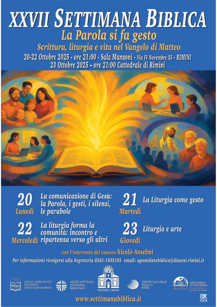 Settimana biblica Data 20 - 23 Ott 2025 Ora 21:00 - 22:30 Ora locale Fuso orario: America/New_York Data: 20 - 23 Ott 2025 Ora: 15:00 - 16:30 Luogo Sala Manzoni Rimini Categoria Eventi Condividi questo evento